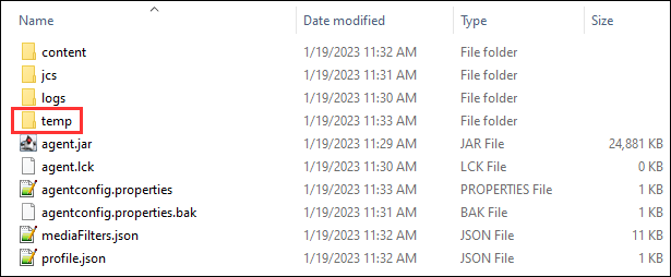 Media Agent 10.2.8 release notesTemporary folder locationThe folder that the agent uses for temporary file storage has been moved to help improve permissions handling on customers' operating systems. The temporary folder is now created in the Agent Directory (the folder where the agent jar file is saved). Agent versions older than 10.2.8 are not affected by this change.